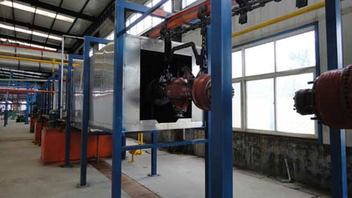 涂裝機(jī)械中前處理設(shè)備用于產(chǎn)品的熱水洗、預(yù)脫脂、脫脂、表調(diào)、磷化、鈍化、純水洗等。以去除被涂件構(gòu)成物之外的所有異物,提供適合于涂裝要求的良好基底,以保證涂層具有良好的防腐性能和裝飾性能。其設(shè)備有間歇步進(jìn)式和連續(xù)通過式,或分為噴射式、噴浸結(jié)合式。