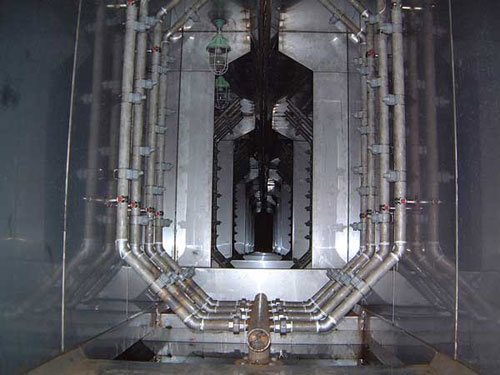 涂裝機(jī)械中前處理設(shè)備用于產(chǎn)品的熱水洗、預(yù)脫脂、脫脂、表調(diào)、磷化、鈍化、純水洗等。以去除被涂件構(gòu)成物之外的所有異物,提供適合于涂裝要求的良好基底,以保證涂層具有良好的防腐性能和裝飾性能。其設(shè)備有間歇步進(jìn)式和連續(xù)通過式,或分為噴射式、噴浸結(jié)合式。