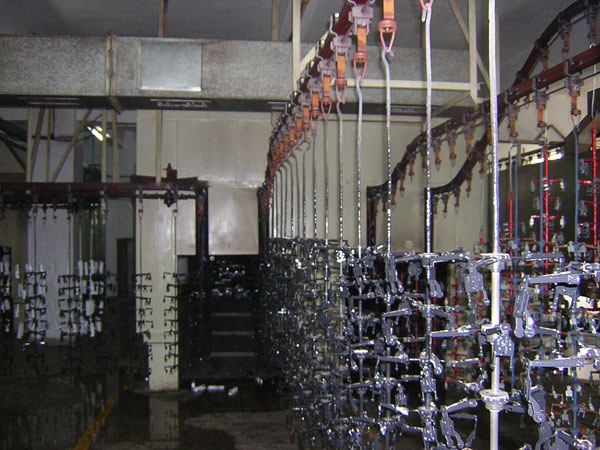 迂回式園盤油漆涂裝設備適用于工件尺寸小、結構無屏閉型腔工 件的靜電自動噴涂。選用進口齒輪供漆泵。 輸漆泵和噴盤上下速度同步變化。 自動調(diào)控電動升降機。 具有手動和自動控制二種輸漆方式。Ω迂回式園盤油漆涂裝設備 采用進口變頻器和電氣控制元件。 涂裝室廢氣經(jīng)處理后達標排放符合國家環(huán)保標準要求。 直線型油漆涂裝設備適用于各工件特別是工件尺寸大結構復雜的工件涂裝。 可根據(jù)產(chǎn)品質(zhì)量要求設計涂裝工位數(shù)量。 涂裝室為水簾或油簾型式,廢氣經(jīng)處理后達標排放,符合國家環(huán)保標準。 供漆方式為壓送式或齒輪泵型式,根據(jù)產(chǎn)品的涂裝特點具體設計選擇。 涂裝室的空氣凈化環(huán)境要求根據(jù)產(chǎn)品及用戶要求設計選擇。 噴漆烤漆一體化兩用房主要用汽車車身及特大工件的噴烤漆之用。送風:送風空氣經(jīng)二級凈化處理,最終達到中效或亞高效凈化效果 。排氣:雙層過濾形式,迷宮式擋漆板加進口過濾材料。 照明:全封閉式日光照明燈 。 加熱:選用進口輕油燃燒主機間接加熱 。噴烤漆房:雙向彩鋼夾心板。